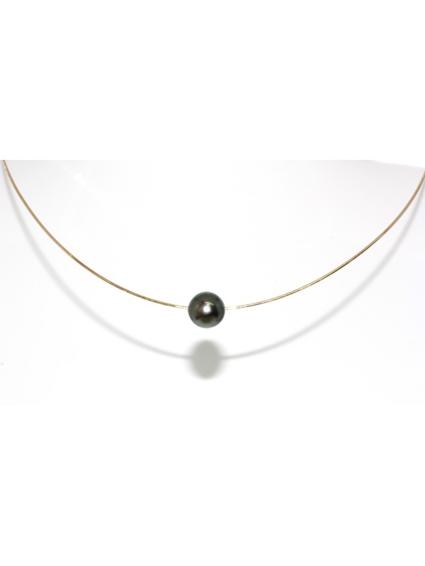 La coloration subtile de la perle tahitienne noire complète sans effort une variété de teintes de peau et de couleurs de cheveux, en faisant un accessoire idéal pour toute occasion. Sa beauté discrète est parfaitement équilibrée par l'élégance fine de la chaîne, résultant en un mélange harmonieux de simplicité et de sophistication.