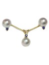 Découvrez notre magnifique parure en perles Akoya, mettant en vedette de superbes perles Akoya blanches associées à des pierres précieuses saphir bleues vibrantes sur une délicate chaîne en or 14k. Le design élégant présente un grand pendentif en perle flanqué de deux perles plus petites, le tout soutenu par un fermoir en or en forme de Y. Le motif torsadé de la chaîne et les détails gaufrés ajoutent une touche de sophistication. Parfait pour ceux qui recherchent des bijoux de luxe, cette parure combine la beauté intemporelle des perles Akoya blanches avec l'attrait des pierres précieuses bleues, créant une pièce véritablement unique et captivante qui exhale le raffinement et l'élégance.