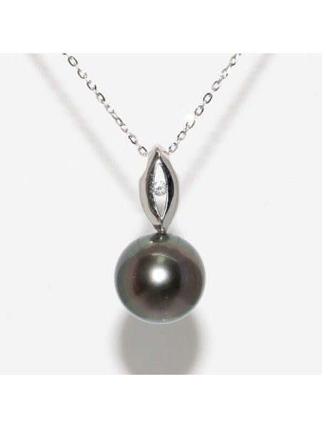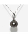 Ce pendentif élégant présente une perle tahitienne lustrée dans une riche teinte gris foncé avec des sous-tons irisés subtils, suspendue à un délicat cadre en or 14k avec un diamant serti. La surface lisse de la perle exhibe un éclat captivant, tandis que sa couleur profonde se dégrade vers des tons presque noirs. Conçu avec une attention aux détails, ce design Vahiti met en valeur la beauté naturelle de la perle. Les facettes raffinées et les lignes épurées du pendentif créent un look sophistiqué, parfait pour ajouter une touche d'élégance tahitienne à n'importe quelle tenue. Un bijou intemporel qui exhale le luxe et le raffinement, idéal pour ceux qui apprécient les bijoux de qualité.