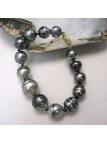 Une danse délicate de teintes gris argenté caractérise ces perles tahitiennes, changeant avec la lumière pour révéler des sous-tons de lavande et de vert une iridescence captivante qui les distingue. Les perles sont habilement nouées sur un cordon sombre et durable qui encadre subtilement leur beauté sans distraction, permettant à leur éclat naturel de prendre le devant de la scène. Mesurant environ 6 à 8 millimètres de diamètre, chaque perle possède une profondeur de couleur et de brillance remarquable, indicative d'une qualité exceptionnelle.