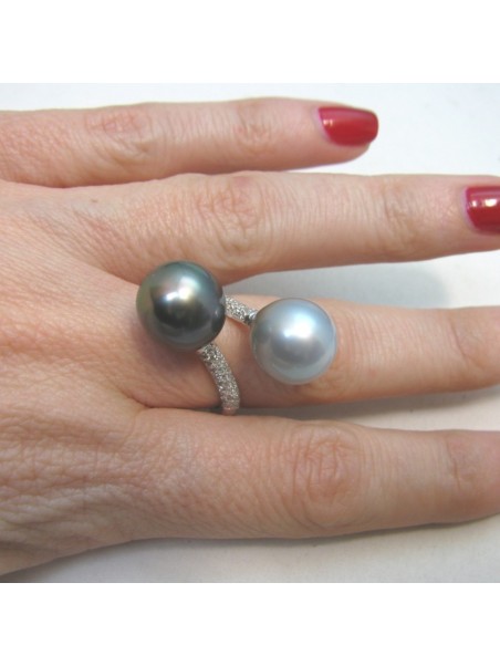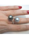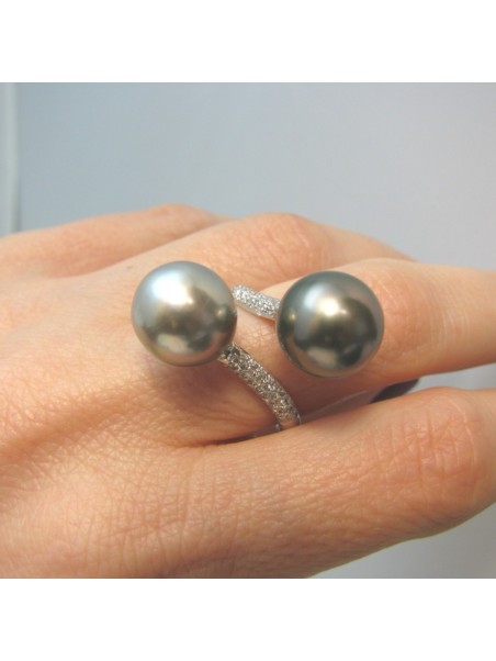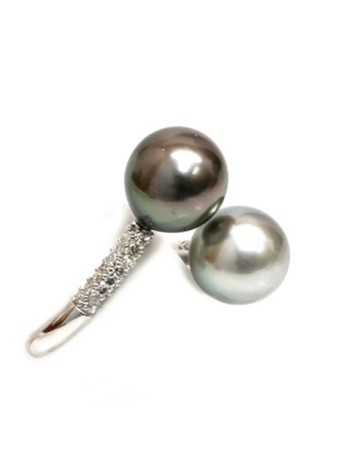 La bague duo moorea est ornée avec deux magnifiques perles de tahiti que vous pouvez choisir dans la couleur que vous désirez. Elle a encore plus de brillance et de clarté grâce aux diamants de de 0.19 carats qui vont sublimer vos mains. Avec cette bague, votre potentiel de séduction se trouve rehaussé à un niveau très remarquable. Elle vous donne de briller et d'offrir aux regards de vos admirateurs un spectacle très glamour.
