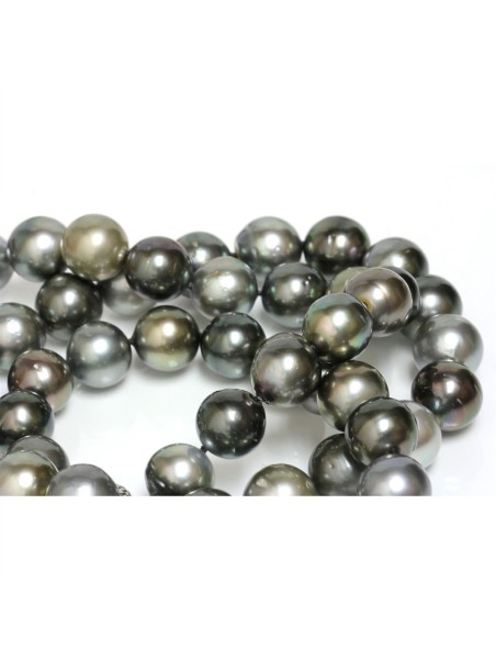 Ce beau collier opéra possède entre 60 et 70 perles de Tahiti de forme baroque assemblées sur un fil de soie. Ces gemmes naturelles de qualité AA mesurent entre 10 et 16 mm de diamètre, vous allez être époustouflé par leurs multiples reflets !