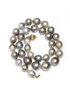 Découvrez l'élégance de notre collier en perles de Tahiti, composé de 33/35 perles multicolores brillantes allant de 10 à 13 mm. Les perles affichent un mélange captivant de nuances blanches, dorées et grises pastels, disposées dans un motif décalé avec une touche d'arrangement circulaire vers les extrémités. Le fermoir en or avec fermeture à ressort ajoute une finition luxueuse. Parfait pour ceux qui recherchent un accessoire sophistiqué, ce collier incarne l'essence de la bijouterie en perles de Tahiti. Sa combinaison de couleurs unique et son design classique en font un choix idéal pour toute occasion, dégageant une luxe discret et un raffinement à chaque port.
