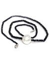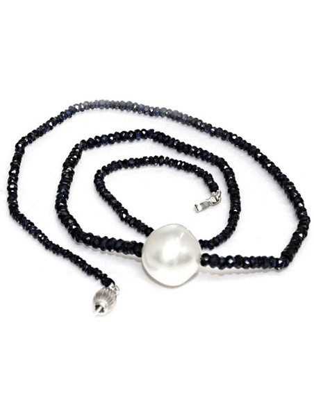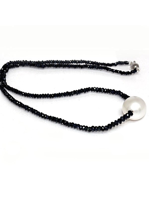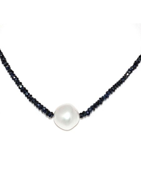 collier est fait main en France par un artisan joaillier, chez Moea Perles, le savoir-faire français est un héritage que nous voulons sauvegarder. Montée sur un fil de soie avec des pierres de saphir bleu foncé, cette création unique est également munie d’un fermoir en or blanc 18 carats.