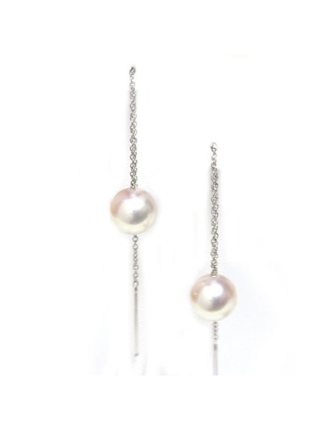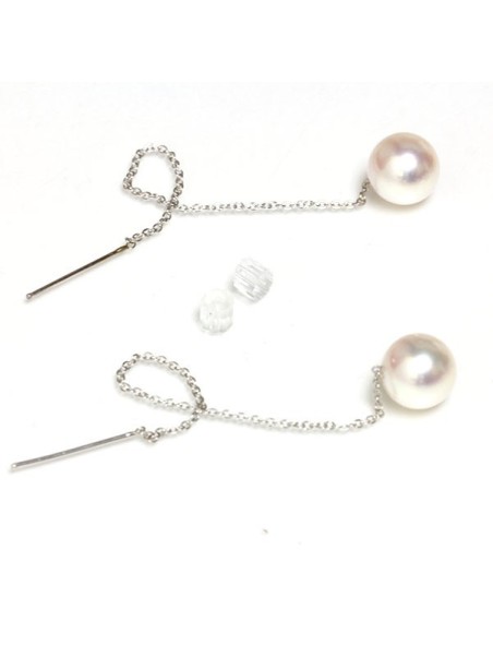 Elles sont accompagnées de belles perles japonaises de 8-8,5 mm et de qualité AAA, elles ont une forme parfaitement ronde. Les perles Akoya ont une teinte blanche avec des reflets roses, leur surface est chatoyante et ultra brillante.