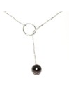 Ce collier est fabriqué en argent de haute qualité, présentant une chaîne complexe avec une texture nuancée qui ajoute de la profondeur à son apparence générale. Le design de la chaîne en maillons serpent offre un look sophistiqué et élégant, le rendant parfait pour s'habiller ou ajouter une touche de raffinement à une tenue quotidienne. Au centre, une perle gris foncé mesurant entre 9-10 mm, est suspendue à la chaîne par un délicat maillon en argent, créant un point focal saisissant.