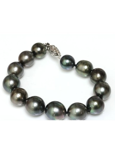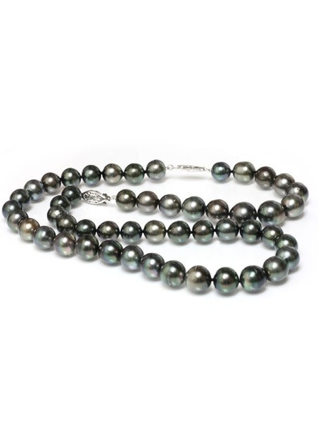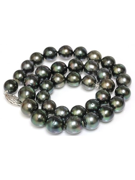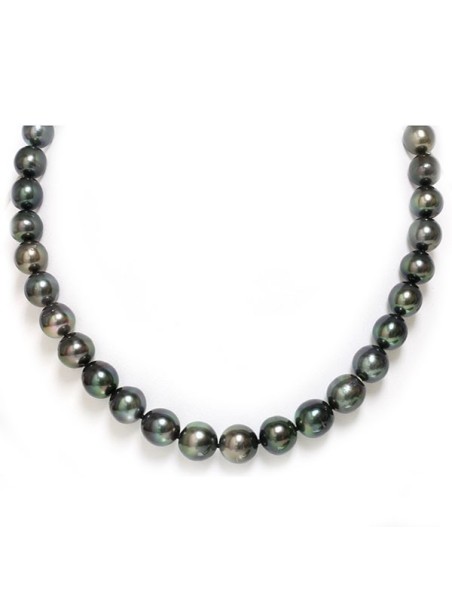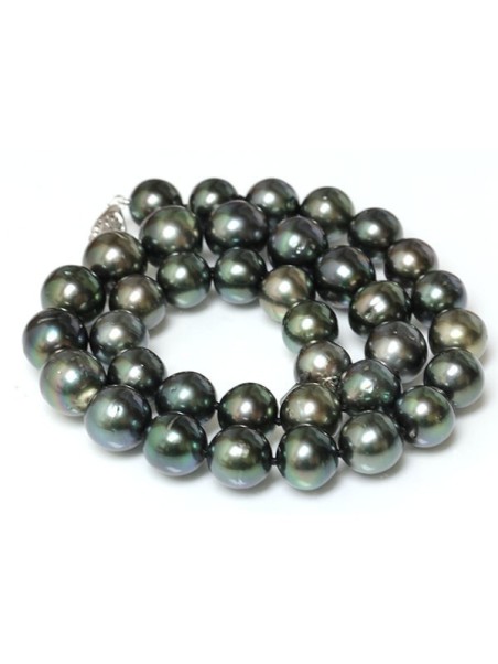 Embrassez l'attrait du Sud Pacifique avec ce Collier et bracelet Bora rond 10-12mm. Présentant des Perles de Tahiti lumineuses, chaque perle mesurant 10-12mm affiche des teintes noires captivantes avec des sous-tons irisés. Cette collection Luxe arbore une forme ronde classique et une qualité exceptionnelle AAA, enfilée sur un fil durable avec un fermoir à clip filigrane sécurisé. La particularité est de pouvoir rassembler le collier et le bracelet ensemble pour en faire un collier plus long type Opéra.