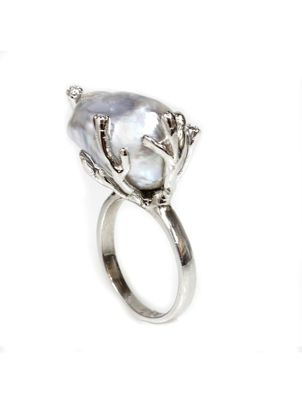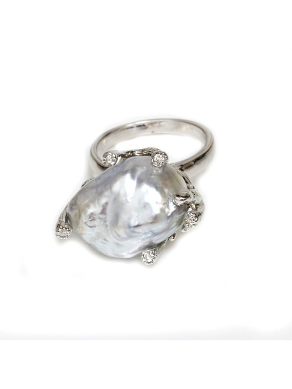 Cette bague est un bijou bien imposant qui ne passe pas inaperçu grâce à sa forme particulière et à la qualité de ses matériaux de réalisations. Elle est un modèle bien apprécié de la gente féminine. Elle est disponible uniquement en or blanc de 18 carats. La pureté et la qualité de l'or en fait une bague de très grande qualité que nous vous recommandons exceptionnellement. Sa spécificité est qu'elle a comme ornement une magnifique perle d'Australie d'une beauté et d'une dimension imposante.