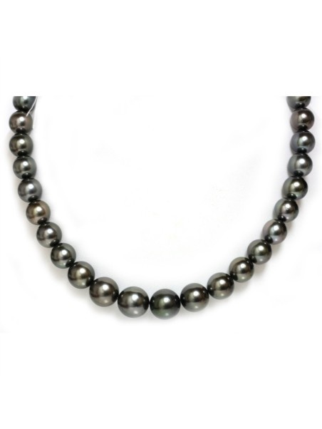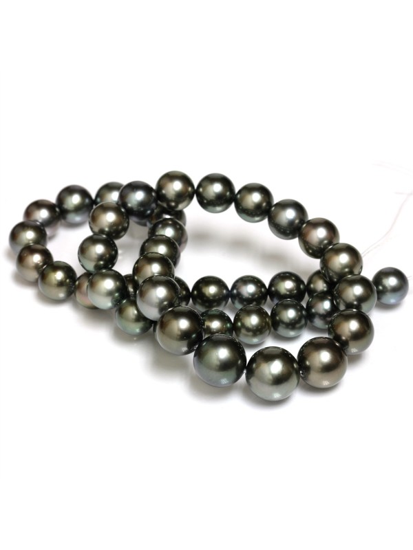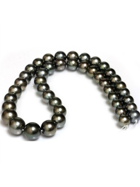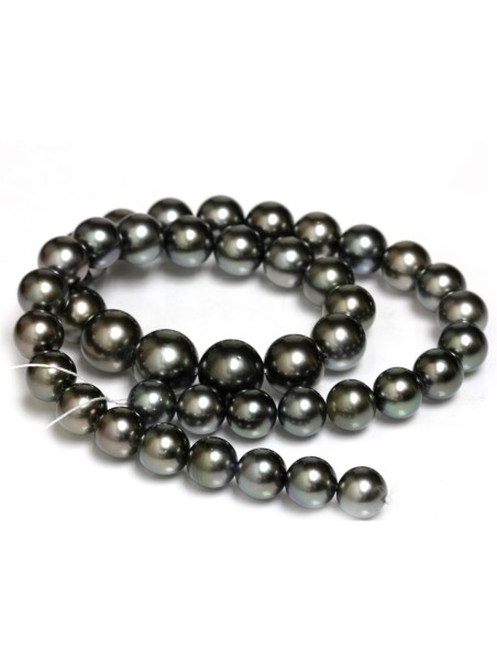 Les gemmes naturellement nacrées et rondes mesurent entre 9 et 12 mm, nous vous contacterons pour faire le choix des perles ensemble ! Les perles de culture de Tahiti sont assemblées sur un fil de soie, vous pouvez choisir la longueur que vous préférez.