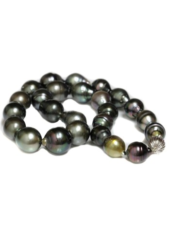 Nous vous présentons un collier de perles élégant à porter tous jours. Fabriqué à partir de perles de Tahiti de haute qualité, ce collier de perles baroques présente des perles de forme irrégulière dans une gamme de teintes gris-brun avec des sous-tons verts subtils. Avec un diamètre de 9 à 12 mm, ces perles lisses et brillantes sont soigneusement enfilées ensemble pour créer un design cohérent. Convient aussi bien aux événements décontractés qu'aux occasions formelles, cet accessoire magnifique est parfait pour ceux qui apprécient les bijoux fins. Disponible en différentes longueurs, y compris 40 cm, 42 cm et 45 cm, avec une note de qualité de AA.