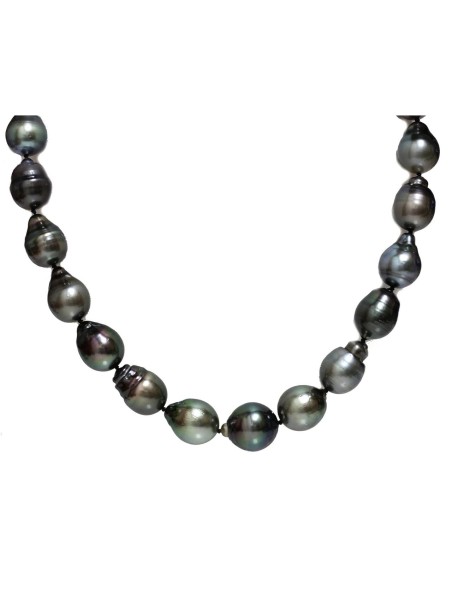 Nous vous présentons un collier de perles élégant à porter tous jours. Fabriqué à partir de perles de Tahiti de haute qualité, ce collier de perles baroques présente des perles de forme irrégulière dans une gamme de teintes gris-brun avec des sous-tons verts subtils. Avec un diamètre de 9 à 12 mm, ces perles lisses et brillantes sont soigneusement enfilées ensemble pour créer un design cohérent. Convient aussi bien aux événements décontractés qu'aux occasions formelles, cet accessoire magnifique est parfait pour ceux qui apprécient les bijoux fins. Disponible en différentes longueurs, y compris 40 cm, 42 cm et 45 cm, avec une note de qualité de AA.