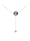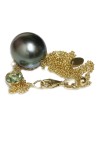 Ce bijou féminin en or jaune 14 carats présente une magnifique perle de Tahiti de qualité AAA, mesurant 10-11 mm. Vous apprécierez également l'élégante incrustation d'un saphir vert étincelant de 0,5 carats au centre de cette gemme naturelle de forme ronde.