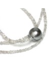 Découvrez ce magnifique Collier en pierre naturelle orné d'une perle de Tahiti ronde de qualité AAA, issue de la collection Luxe. La perle, d'une taille comprise entre 10 et 11 mm, présente une couleur grise intense qui captive le regard. Le collier est soigneusement réalisé avec des cristaux de diamant blanc bruts qui mettent en valeur la beauté de la perle. Les petits cristaux irréguliers ajoutent une touche de texture et de profondeur à l'ensemble, créant un effet visuel saisissant. La perle de Tahiti est associée à des ornements en forme de diamants, ce qui accentue son éclat naturel. Le fermoir mousqueton, réalisé en or 14 carats, assure une fermeture sûre et pratique. Ce collier élégant est issu de l'univers Moea Perles et se distingue par son raffinement et sa sobriété. La qualité des matériaux utilisés et le soin apporté à sa confection font de ce bijou un véritable objet de luxe.