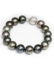 Bracelet Perles de Tahiti 10-12 mm rondes top qualité AAA de couleur gris foncées. Fermoir or jaune ou blanc 14K ou 18K de forme boule au choix. Découvrez le bracelet Marei, un bijou exquis qui incarne l'élégance et la beauté des perles de Tahiti soigneusement sélectionnées, ce bracelet est un...