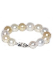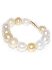 Bracelet en perles des mers du sud d'Australie, forme baroque cousues sur fil de soie, fermoir en or 14 carats. Taille des perles entre 10 mm et 13 mm. Disponibilité : Fabrication et expédition en 6 à 10 jours ouvrés (frais de port offert)