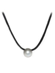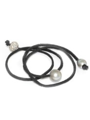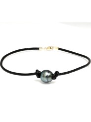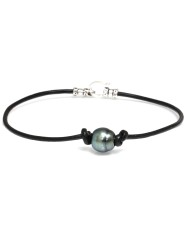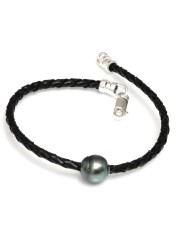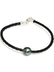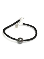 Bracelet en cuir rond noir tréssé et 1 perle de Tahiti baroque.