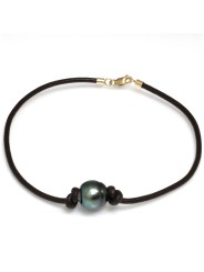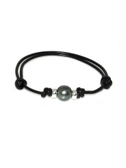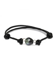 Bracelet en cuir noir réglable avec 1 perle de Tahiti baroque