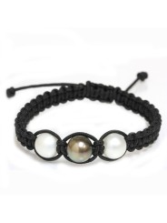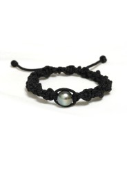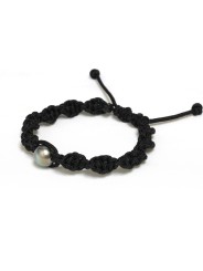 Bracelet en macramé shamballa 1 perle de tahiti ronde 9/11mm et rondelle en argent rhodié 925. Taille réglable du poignet pour toute personne.