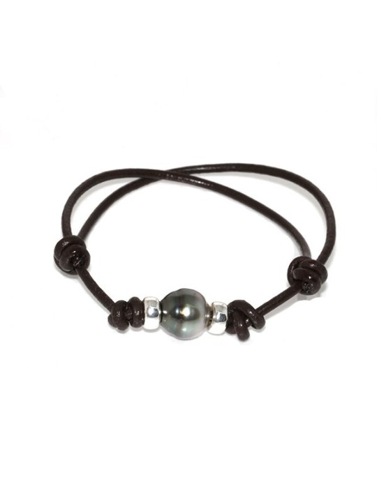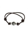 Bracelet en cuir marron réglable avec 1 perle de Tahiti baroque