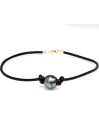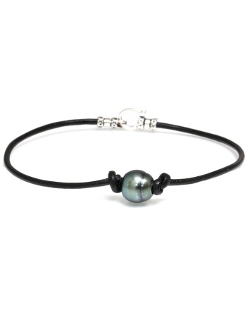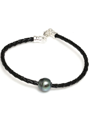Bracelet cuir noir perle de tahiti